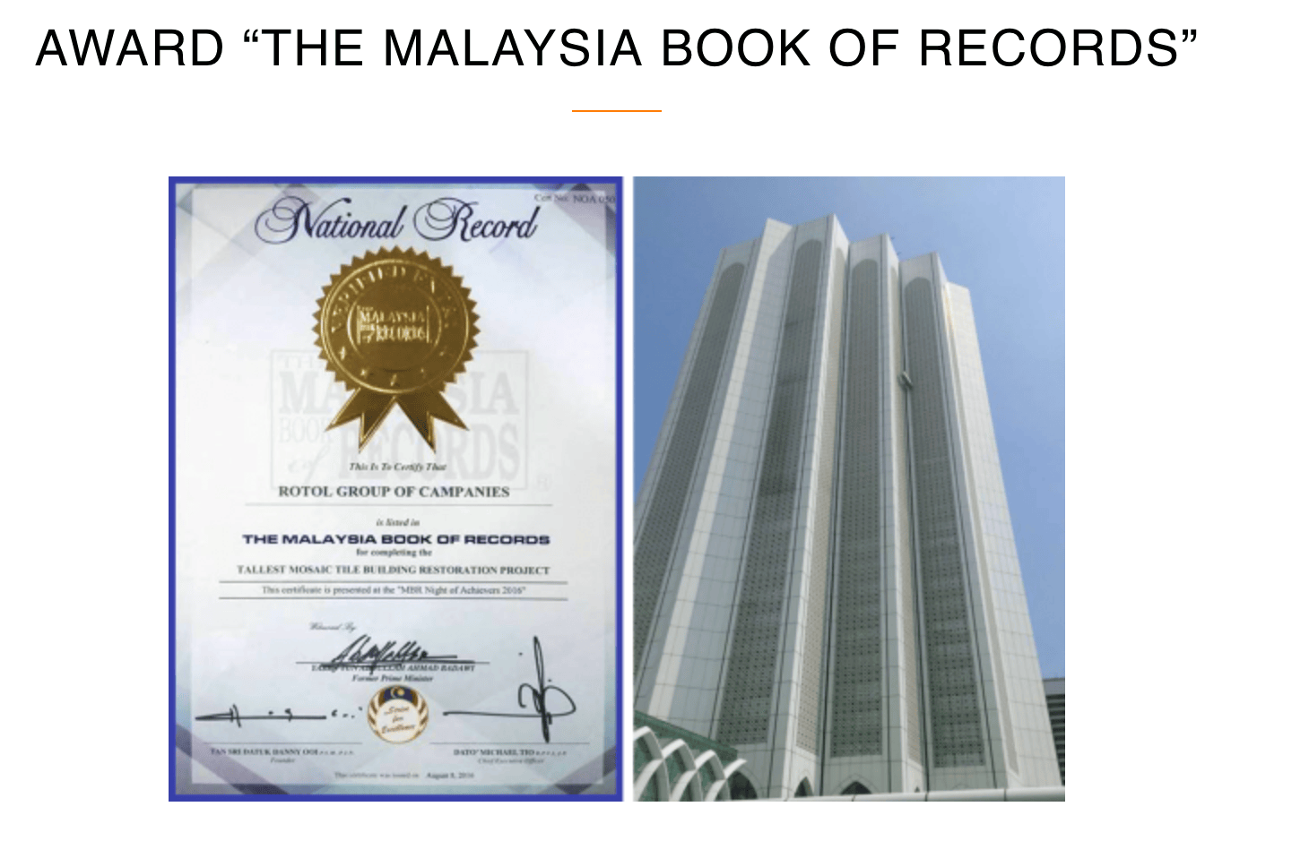 Rotol Group, one of Malaysia’s leading specialist in architectural wall coating, painting, cladding, specialist building material supplies, highrise exterior building maintenance, facade repair, restoration & upgrading for both government and private sector.